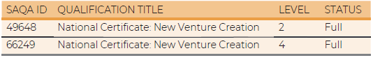 NICDAM has learning programme approval to present the following qualifications falling under the Services SETA: